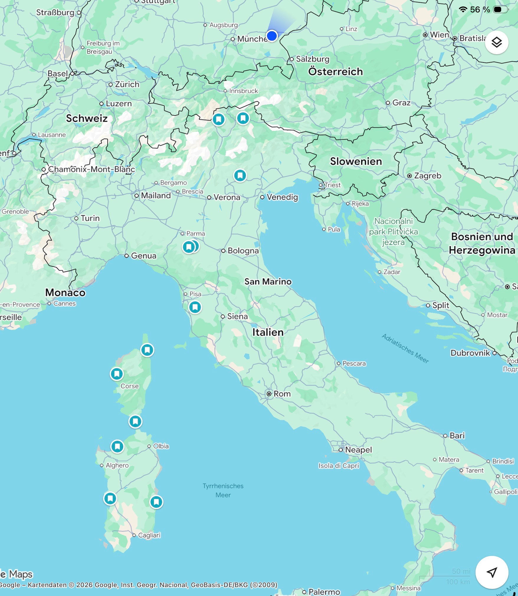 Auf Sardinien haben wir gleich mehrere Hotels, damit genügend Abwechslung aufkommt. Korsika dann zum Abschluss, bevor wir uns den Heimweg über Italien und Österreich wieder zurückkämpfen – mit nochmal ordentlich Pässen obendrauf, versteht sich.